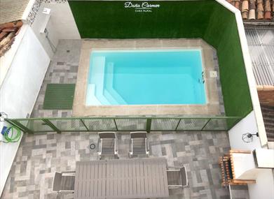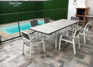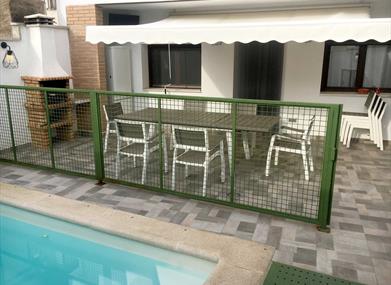 - Patio con piscina privada y barbacoa.
