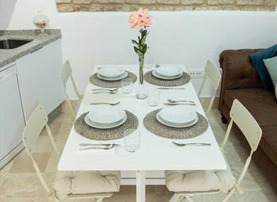 La Vivienda Turística Cristo del Buen Viaje consta de un acogedor salón - cocina - comedor totalmente equipado y diversas commodities que harán su estancia lo más grata posible. Así mismo, este espacio cuenta con un gran ventanal, flanqueado por arcos soportados por una columna de mármol de estilo corintio perteneciente al antiguo edifico el cual databa de 1875, que aporta luz natural y hermosas vistas a un patio interior. El edificio es tranquilo y la calle desemboca en un callejón, típico de la antigua judería, que al no tener salida al tráfico rodado hace de este lugar un sitio muy apacible donde descansar. Durante su estancia estaré disponible para resolver cualquier duda que puedan tener. Al recibirlos en el check-in les transmitiré información sobre los lugares a visitar así como algunas indicaciones de dónde comer y cómo moverse.