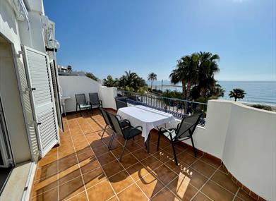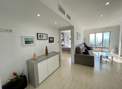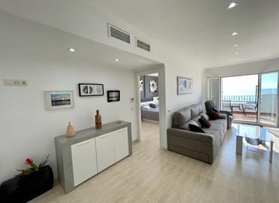 Cuenta con un enorme salón con una terraza en primera línea de playa. La cocina amueblada de diseño con microondas.