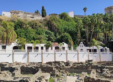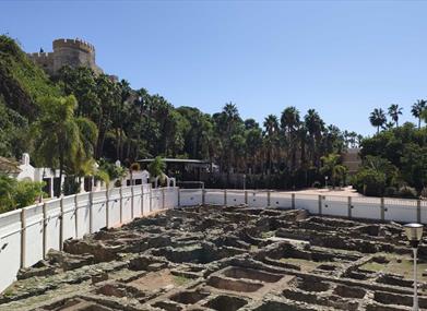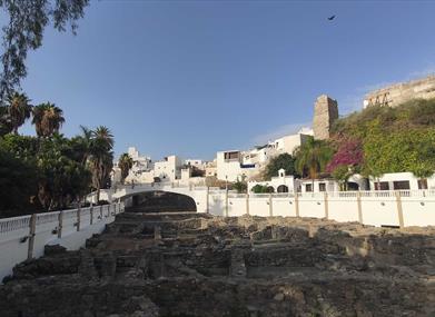 Bajo la zona del templo se ha documentado la existencia del primer asentamiento fenicio, del siglo VII a. de C.