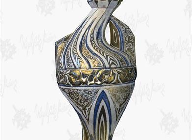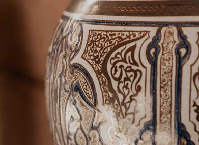 La Loza Dorada Nazarí, máximo exponente de la cerámica artística medieval, procede de la tradición oriental dorada y azul que fue introducida en la península ibérica por alfareros persas. Se desarrolló en Granada y Málaga durante los siglos XIV y XV, alcanzando su mayor esplendor estético y perfección técnica en los Vasos de la Alhambra.