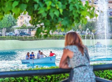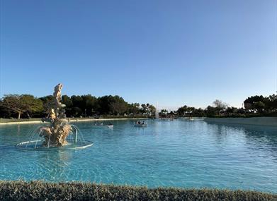 Cuenta además con un lago artificial de más de 9.000 metros cuadrados, en el que se puede navegar gracias a un servicio de alquiler de barcas, y un magnífico tiovivo, clásico, de estilo veneciano, con casi 50 figuras de jirafas, caballitos, carrozas y casitas para el disfrute de los más pequeños. Así como un parque infantil delimitado y un árbol de chupetes.
