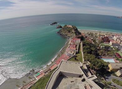 Plenamente integrados en la población de Almuñécar, se erigen estos tres peñones compuestos por materiales duros y de oscuros colores, que se adentran en el mar como si pretendieran separar sus aguas.