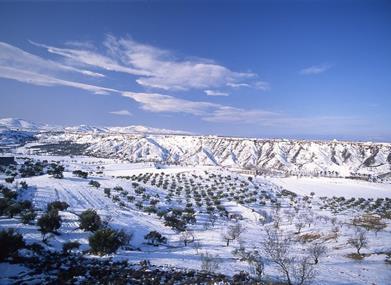 Ajena a la aridez esteparia que la rodea, la Sierra de Baza se levanta al cielo como un coloso que acapara las aguas que niega el llano y les da cobijo en sus entrañas.