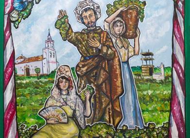 Otro de los momentos de más significado tiene lugar en la romería, en la que se lleva a San Ginés, patrón de la viticultura, al Santuario de Nuestra Señora de Loreto, donde es ofrecido el primer fruto de la vid a la Patrona del Aljarafe.