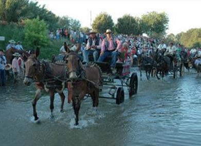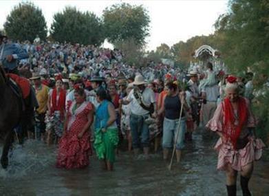 El acto, declarado Fiesta de Interés Turístico de andalucía, consiste en el cruce del río Guadiamar por un vado, conocido como “vado de Quema” por estar ubicado en la Finca de Quema.
